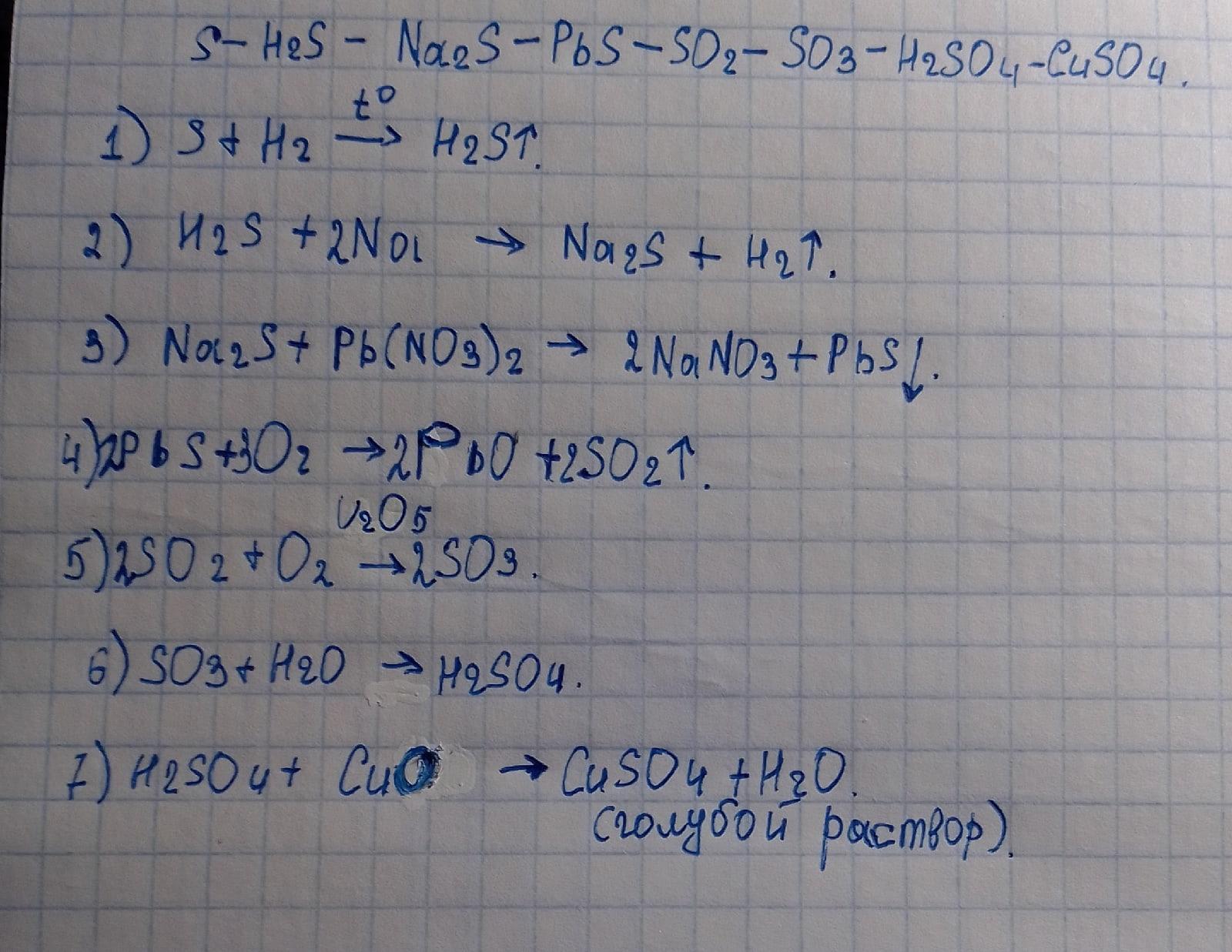 S → H2S → Na2S → PbS → SO2 → SO3 → H2SO4 → CuSO4