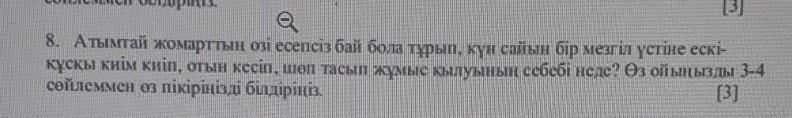 8. Атымтай жомарттың өзі есепсіз бай бола тұрып, күн сайын бір мезгіл үстіне ескі-