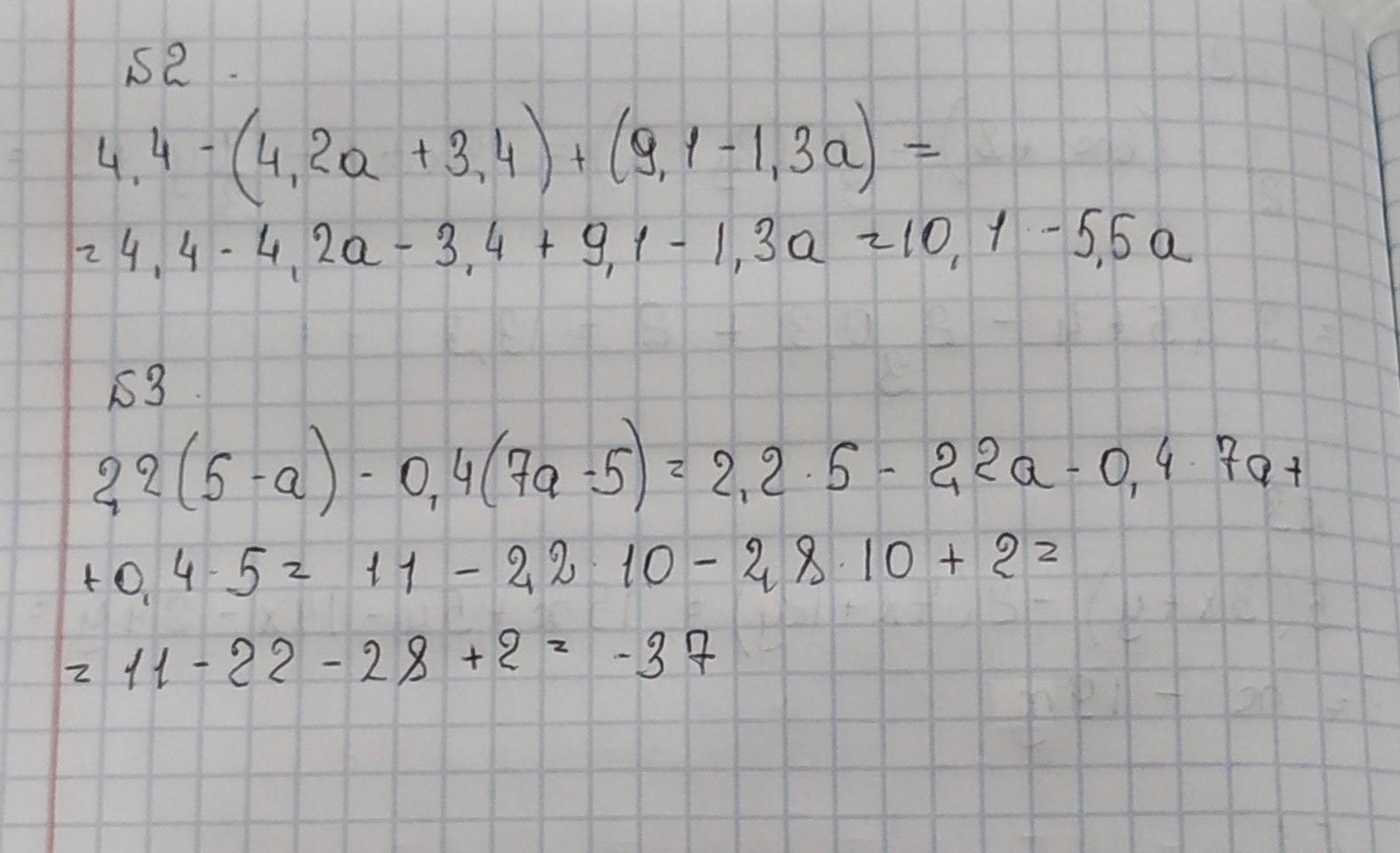 Упростите выражение: 4,4–(4,2a+3,4)+(9,1–1,3a)