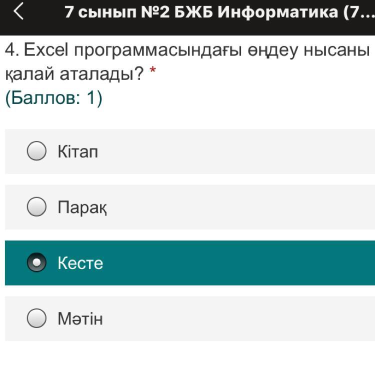 кесте болады ия осы дұрыс бжб
