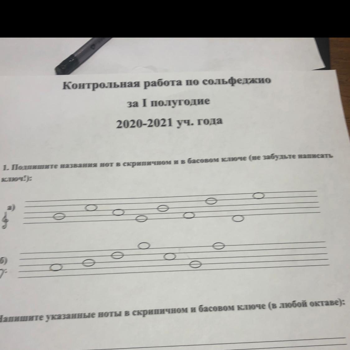1. Подпишите названия нот в скрипичном и в басовом ключе (не забудьте написать