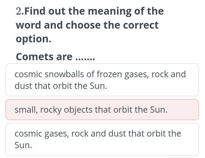 cosmic snowballs of frozen gases? rock and dust that orbit the sun.