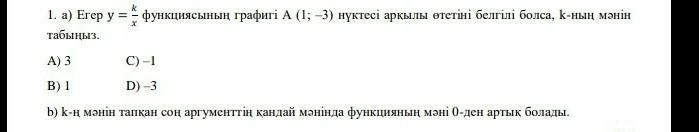 Найдите значение коэффициента k, если известно что график функции у=k/х проходит через точку с координатами (1; -3) .