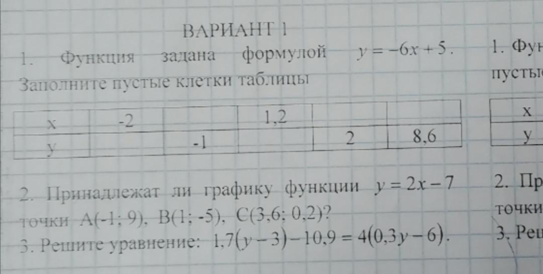 y = 2 × 1 -7 = 2 - 7 = -5 принадлежит