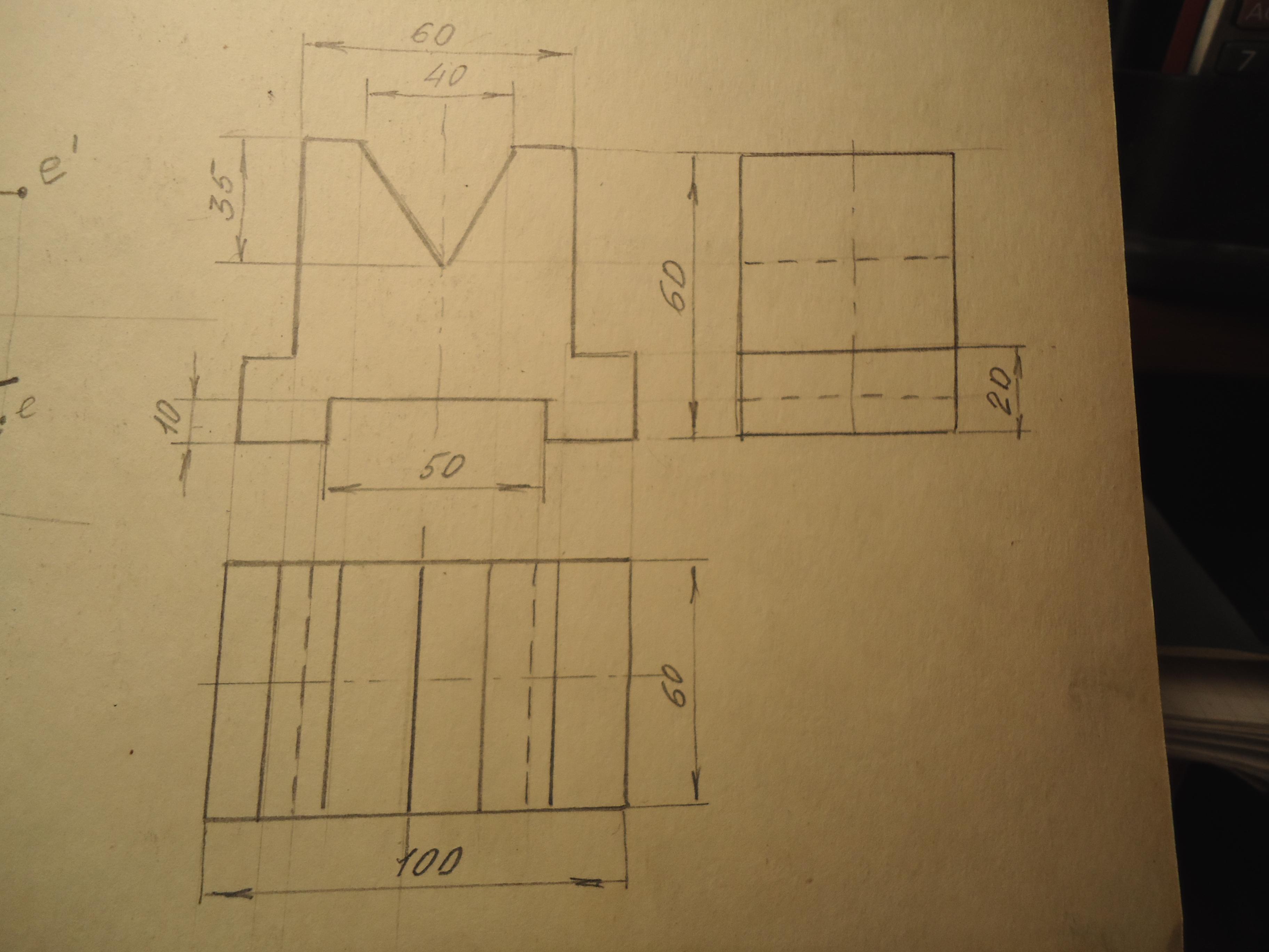 Чертёж см. на фото. Выполняла чертёж почти от руки с сохранением пропорций на глаз.
