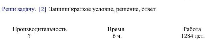 Производительность= Работа/Время=1284/6=214 дет./ч.