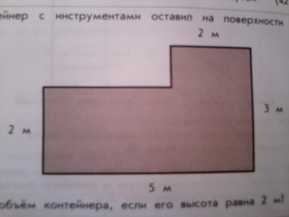 Контейнер с инструментами оставил на поверхности земли такой отпечаток. Чему равен объем контейнера, если его высота равна 2 метра?