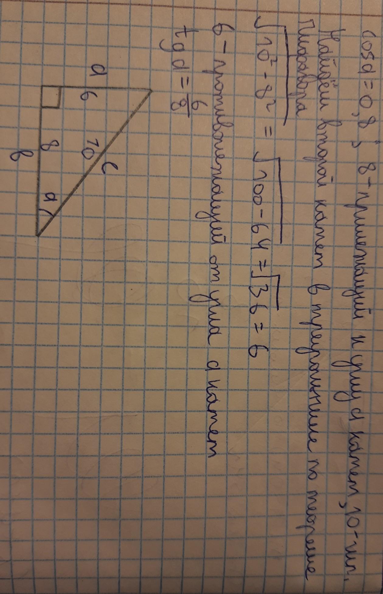 В прямоугольном треугольнике cosα = 0,8