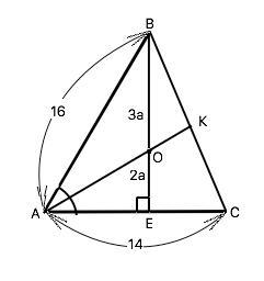 ВО:OE = 3:2, AB = 16 см, AC = 14
