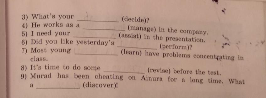 Make the nouns of the words in brackets