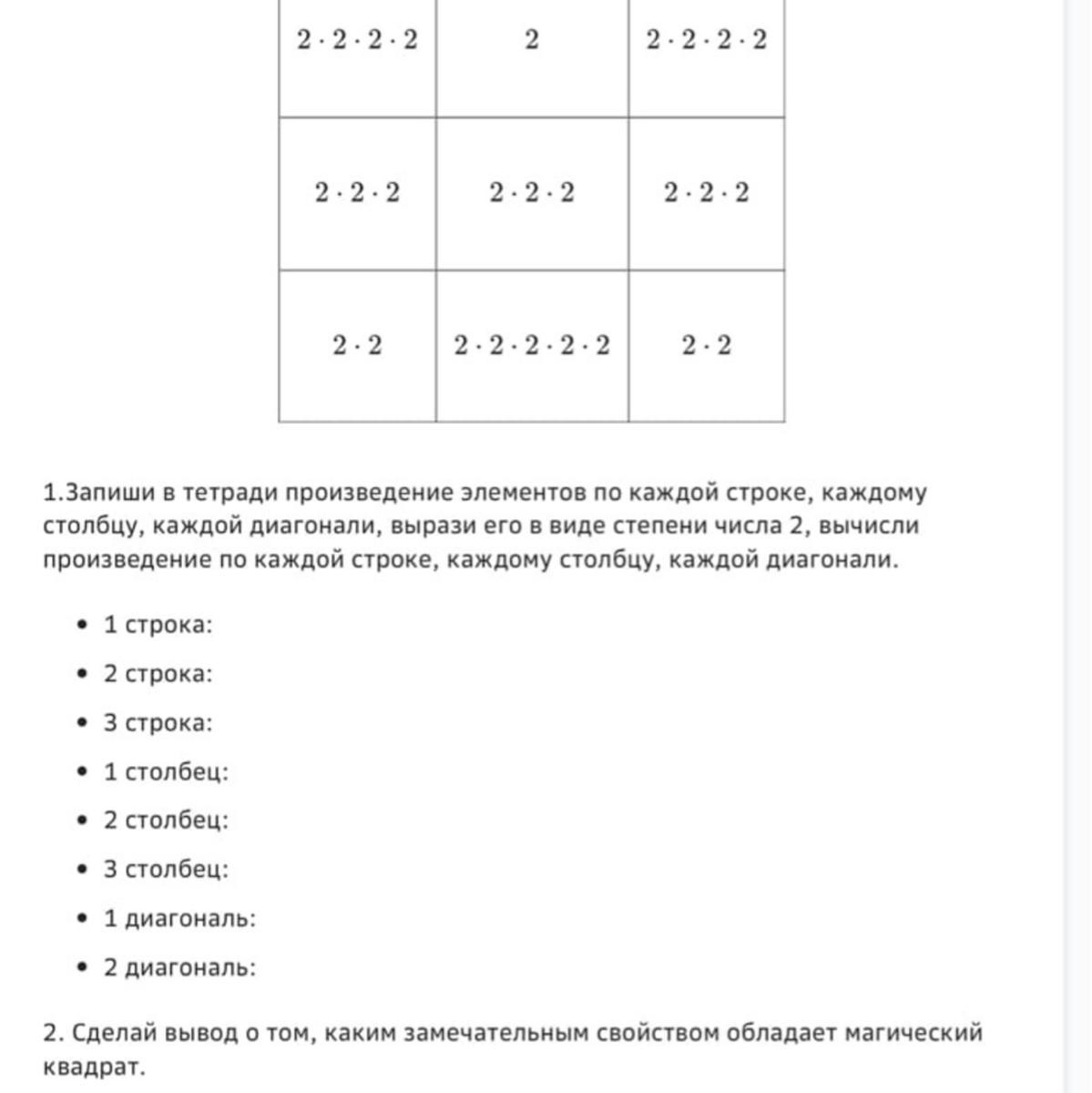 Вывод: в магическом квадрате сумма чисел в каждой строке, каждом столбце и на обеих диагоналях одинаковая.