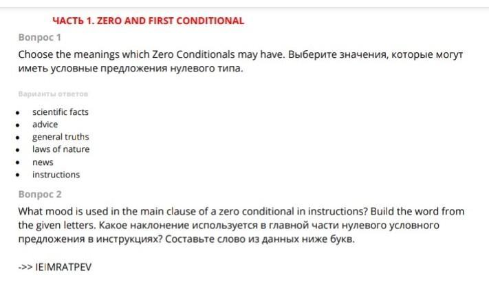 помогите Выберите значение, которые могуь иметь условные предложение нулевого типа
