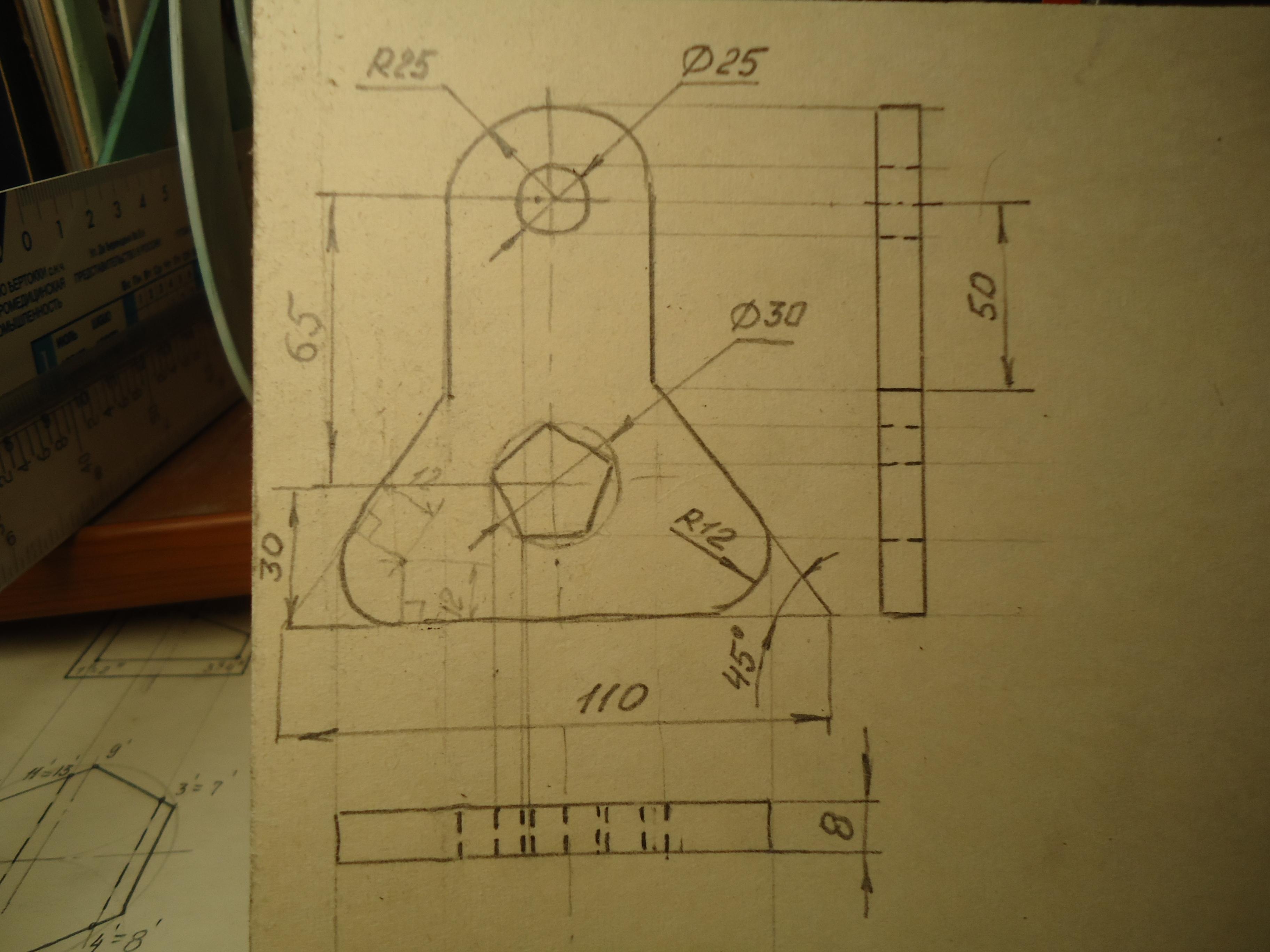 Но вообще-то для таких деталей строят одну проекцию (вид спереди) и указывают её толщину S8.