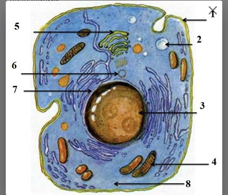 5 - комплекс Гольджи; 6 - клеточный центр; 7 - ЭПС; 8-цитоплазма