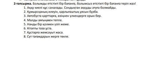 Болымсыз етистик:болмайды, бузба, теппе, жеме, токпе.