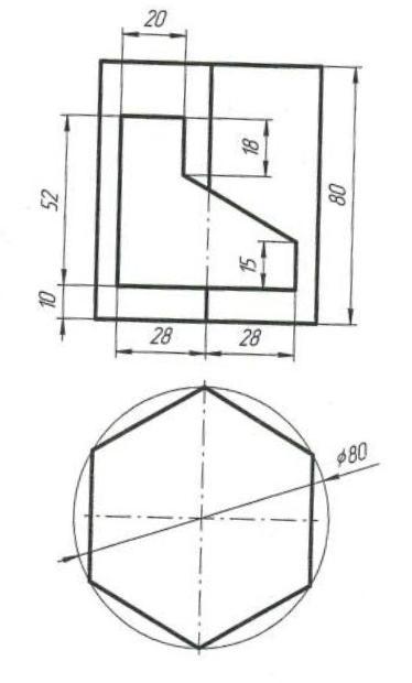 Три вида детали с вырезом см. на фото. Чертёж выполнен в масштабе 1:2.