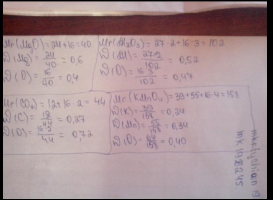 вычислите массовую долю кислорода в составе след. веществ: