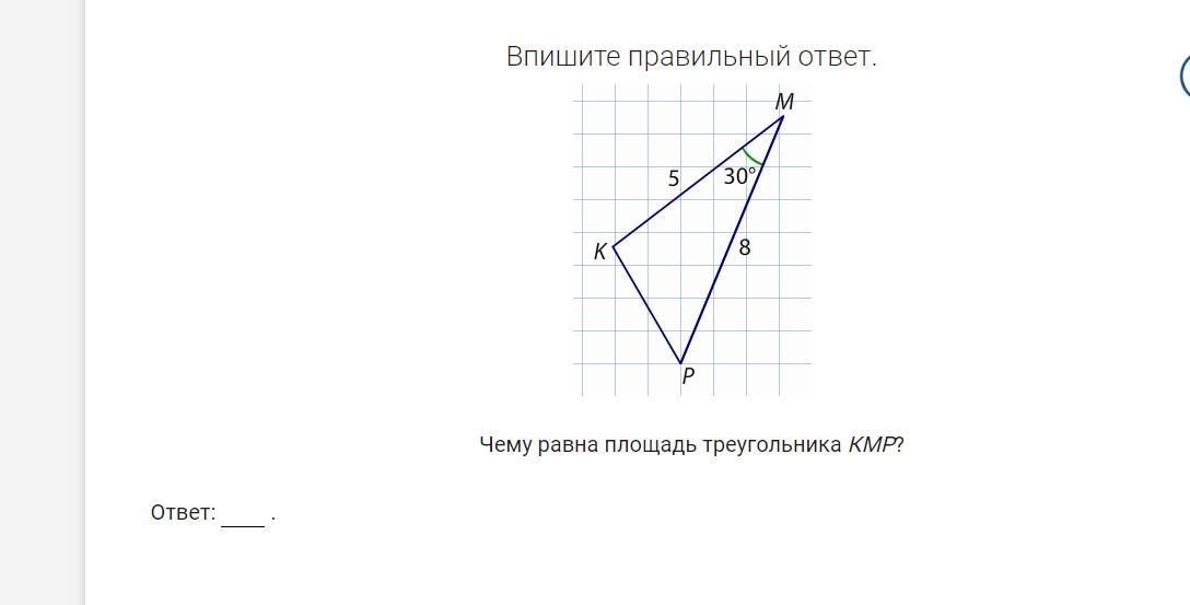 Если опустить высоту из точки К на ребро МР, то у нас получиться прямоугольный треугольник, так как у нас углы 90, 30, и соответственно 60 (180-90-30), то и соотношение сторон будет 5,3,4 соответственно. Из чего мы можем найти высоту. Высота=3.