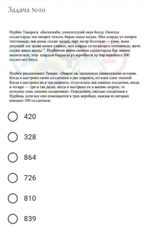 Можно решить не "по-честному", а проверить ответы на условие. Число должно НЕ делиться на 2-8. 1) на 2 - выпадают все!, кроме 839. Осталось его проверить. 839=2*419+1=3*279+2=4*209+3=5*167+4=6*139+5=7*119+6=8*104+7. Ну и 839<3*300=900. Значит, ответ 839.