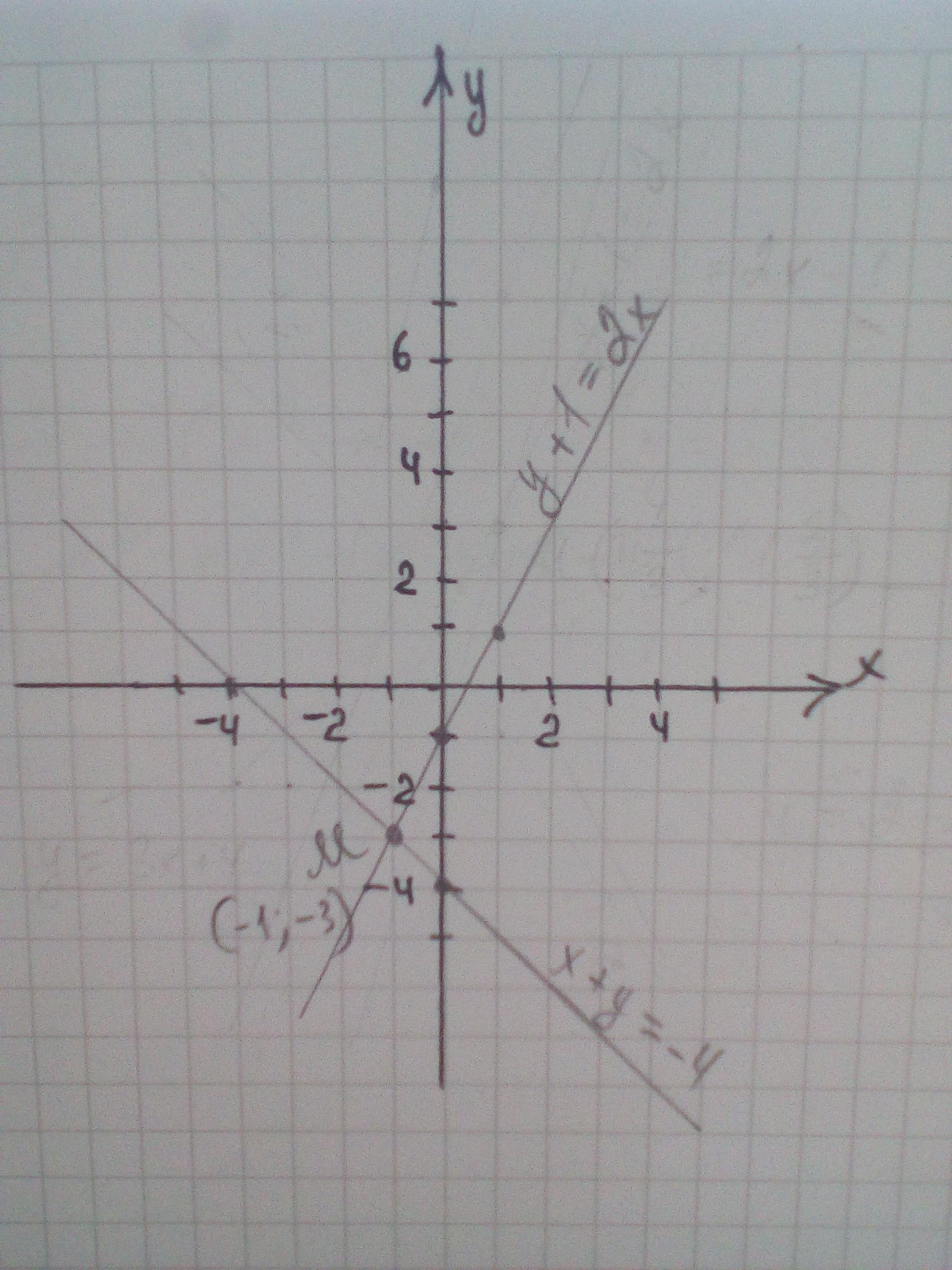 решите графическим методом систему уравнений найдите координаты точки пересечения графиков функций у +1=2х х+у =-4