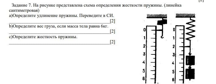 Задание 7. На рисунке представлена схема определения жесткости пружины. (линейка