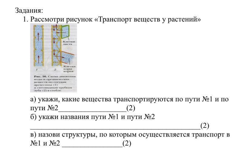 1. Рассмотри рисунок «Транспорт веществ у растений»