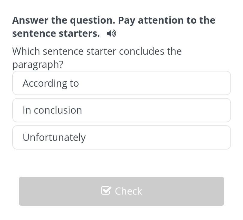 Which sentence starter concludes the paragraph? According to In conclusion Unfortunately