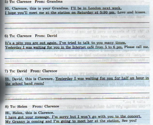 8) Helen said that she had got your message. She was sorry but she would not go with her to the concert. Her Granny was coming and She was going to meet her at the station.