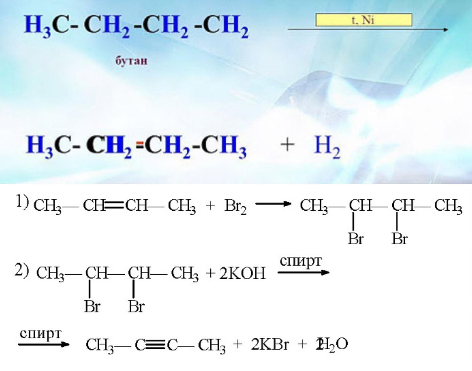 (b) Запишите необходимые уравнения реакций для получения бутин-2 из бутана, с