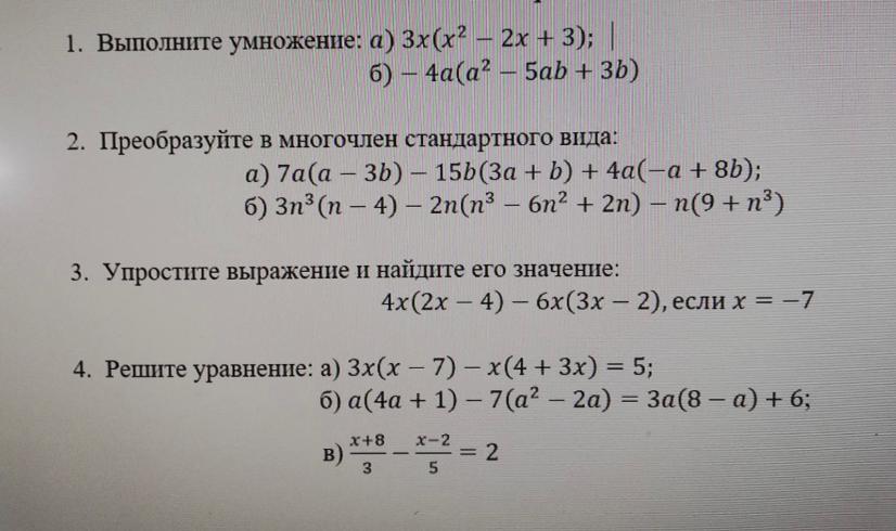 1. а) 3x(x^2-2x+3) = 3х^3-6x^2+9x