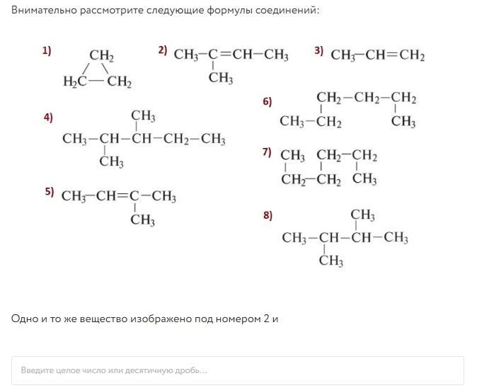 1. Одно и то же вещество под цифрами 2 и 5. Это 2-метилбутен-2.