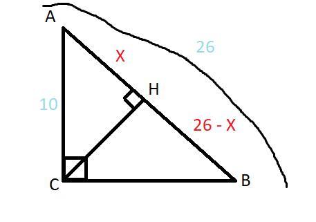 Пусть AH = x, тогда BH = AB - AH = 26 - x.По тереме Пифагора: