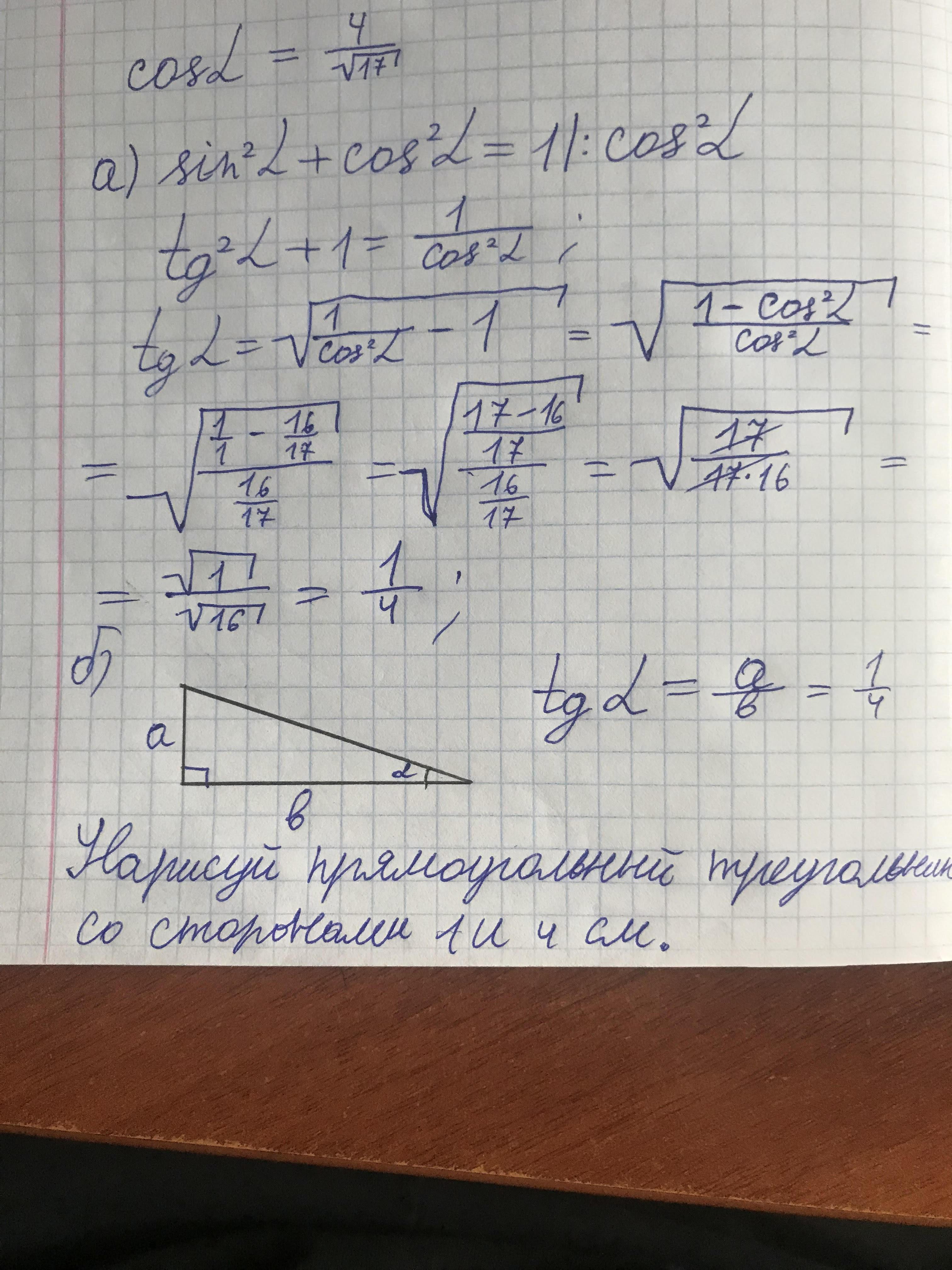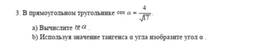 б) Нарисуй треугольник как у меня на рисунке обозначь угол альфа стороны a и b.Сторона a = 1 см, b = 4 cм!!!