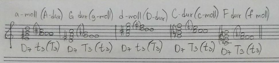 До-ми-соль-си бемоль -> фа(3 раза)-ля