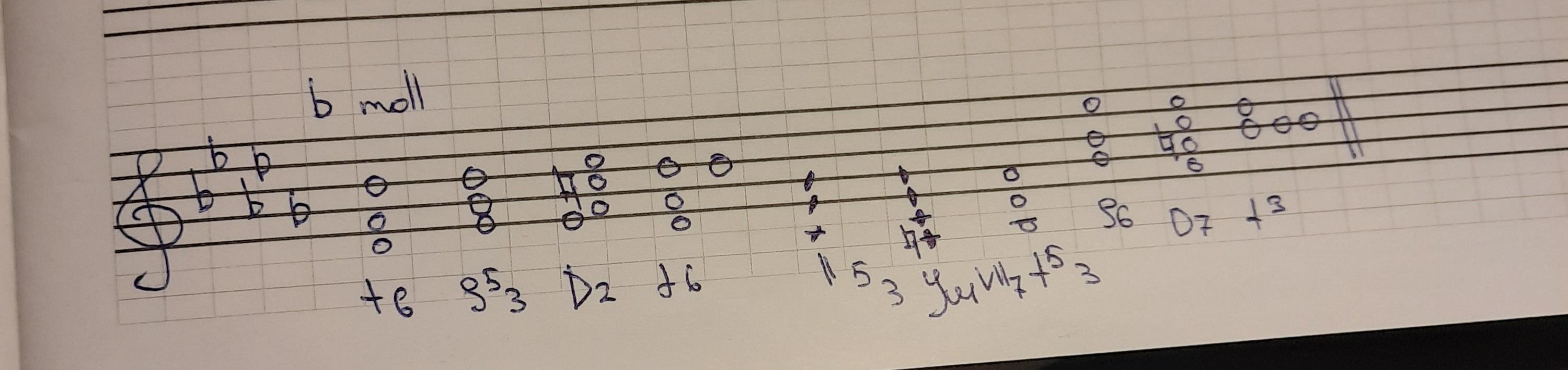 Построить аккордовую последовательность в тональности си бемоль миноре (во вложении)