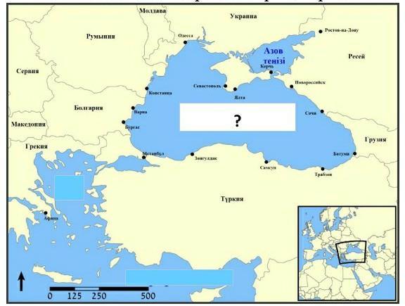 a. Картадағы «?» белгісімен көрсетілген теңіздің атауын жазыңыз
