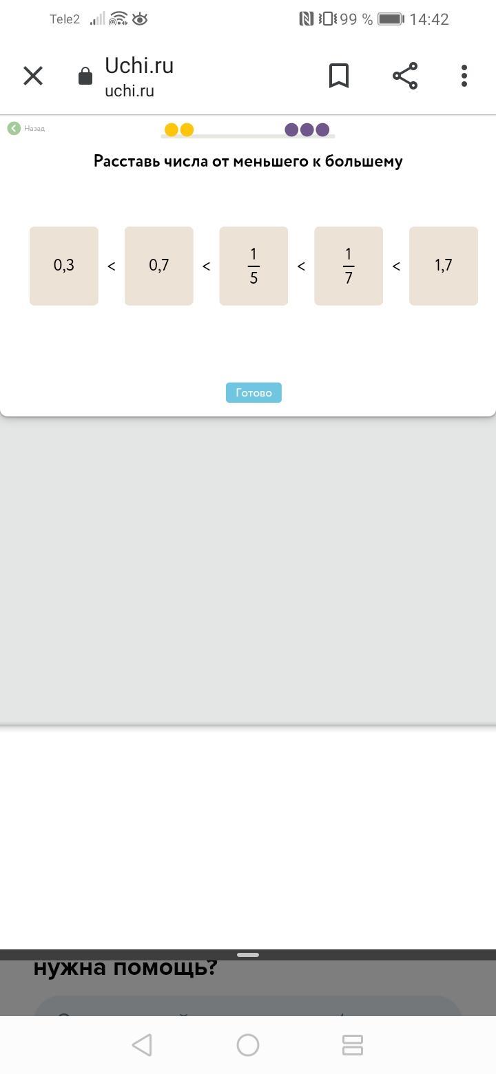 Ответ: 1/7<1/5<0,3<0,7<1,7