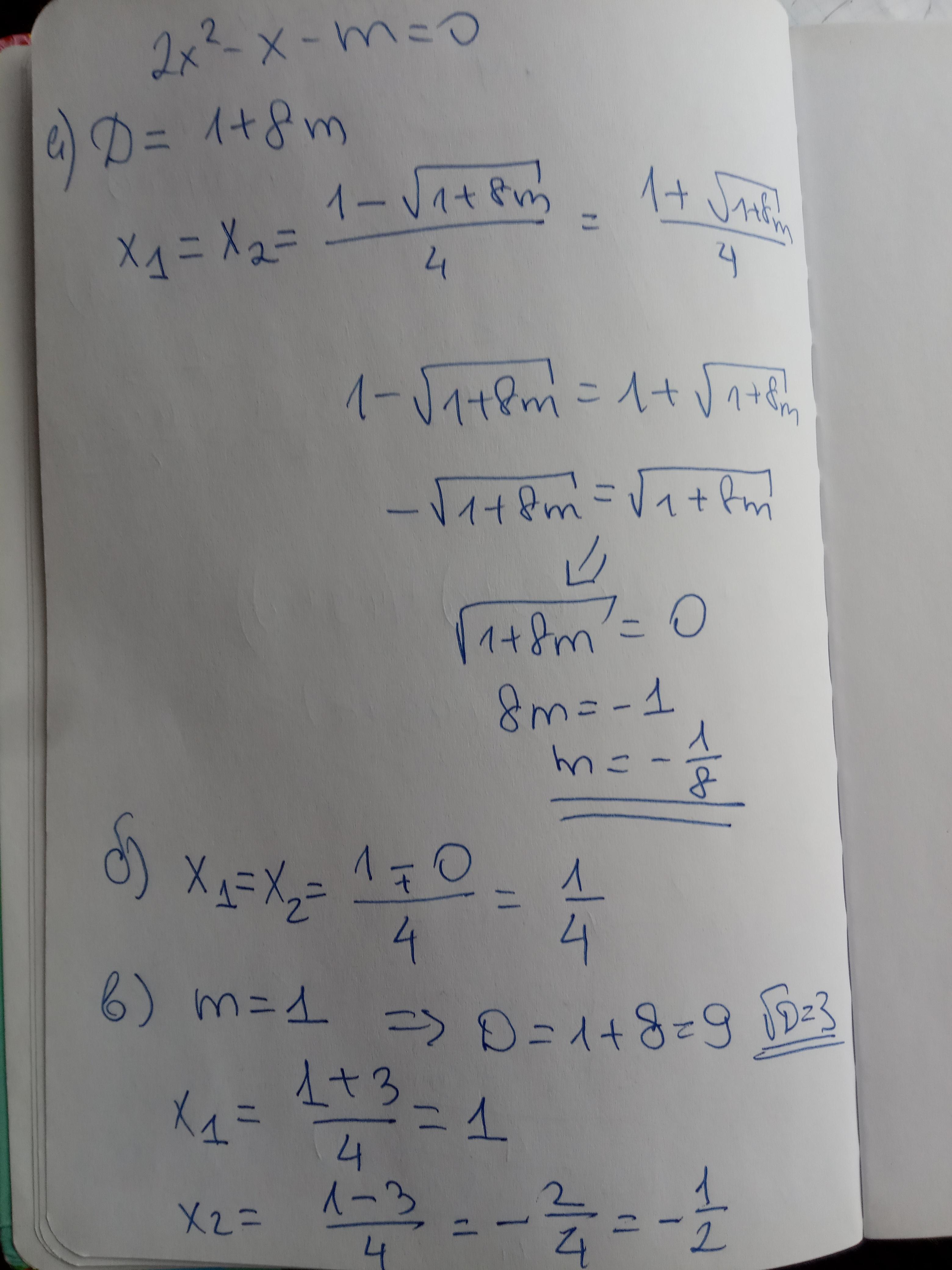 Уравнение 2x^2-x-m=0 задается следующим образом: