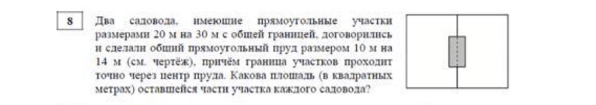 S каждого из прямоугольных участков садоводов = 20 * 30 = 600 м²