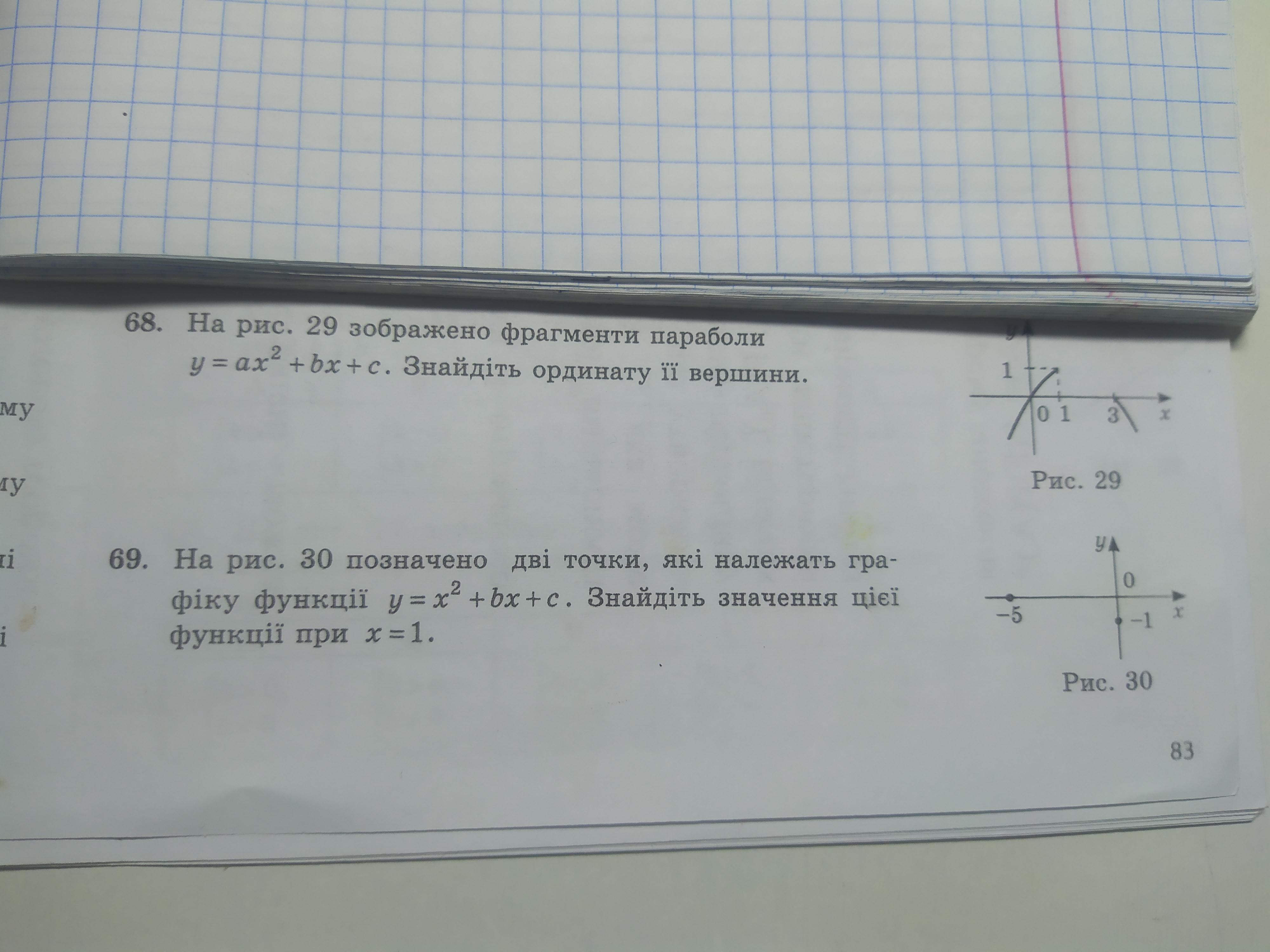 68) на рис.29 изображено фрагменты параболы y=ax²+bx+c. Найдите ординату (у) её вершины.