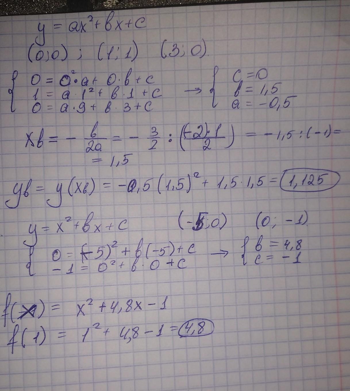 69) на рис.30 намечено две точки, которые принадлежат функции y=x²+bx+c. Найдите значение функции при х=1