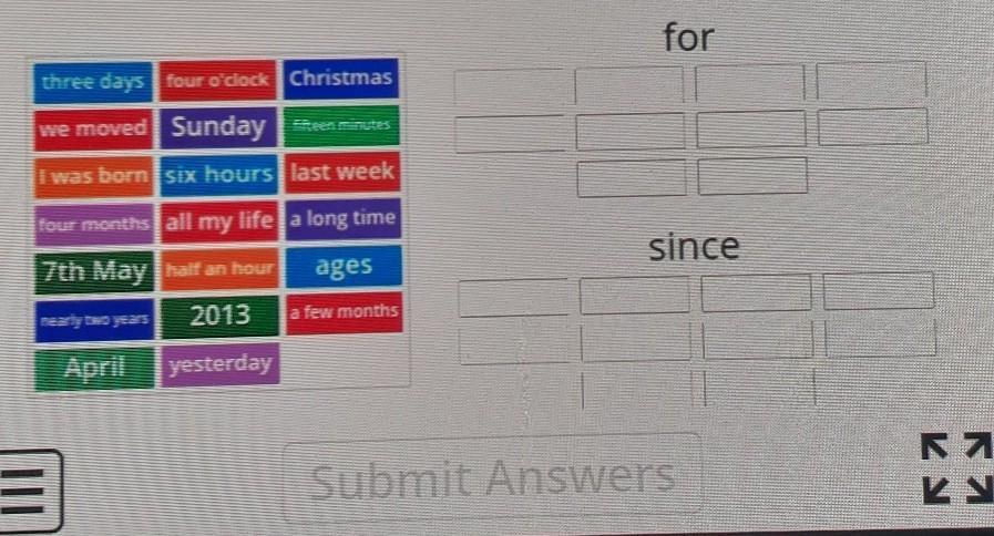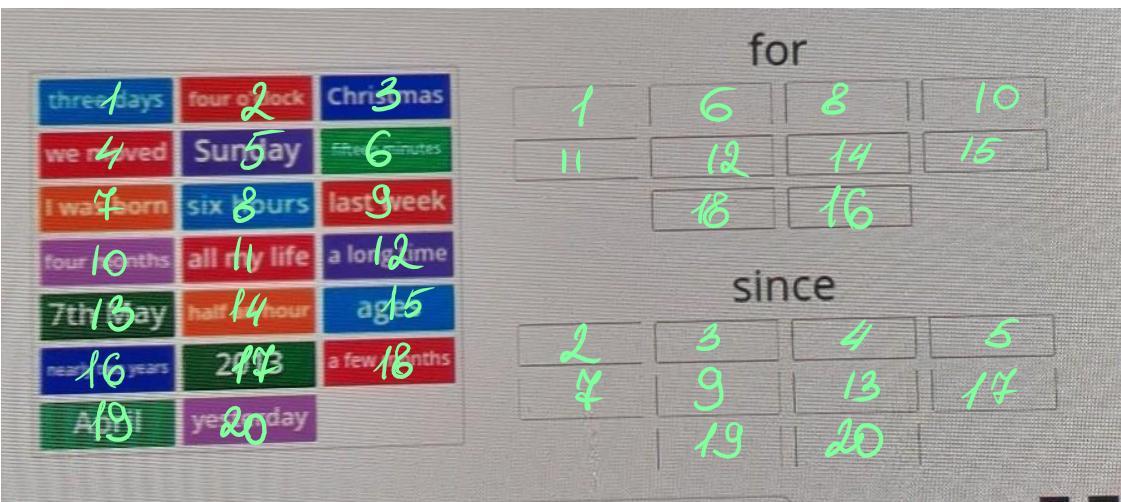 four o'clock, Christmas, we moved, Sunday, I was born, last week, 7th May,