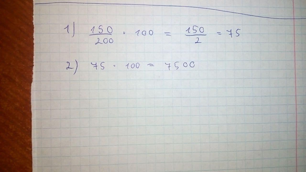 дробь 150 делить на 200 и умножить на 100% ответ умножить снова умножить на 100% решите пж срочно