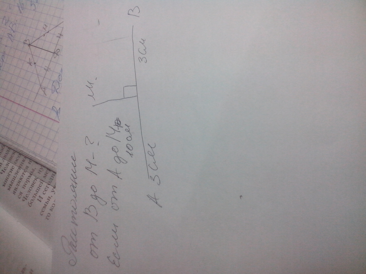 Расстояние от В до М тоже 10 см,т.к. это равнобедренный треугольник получается