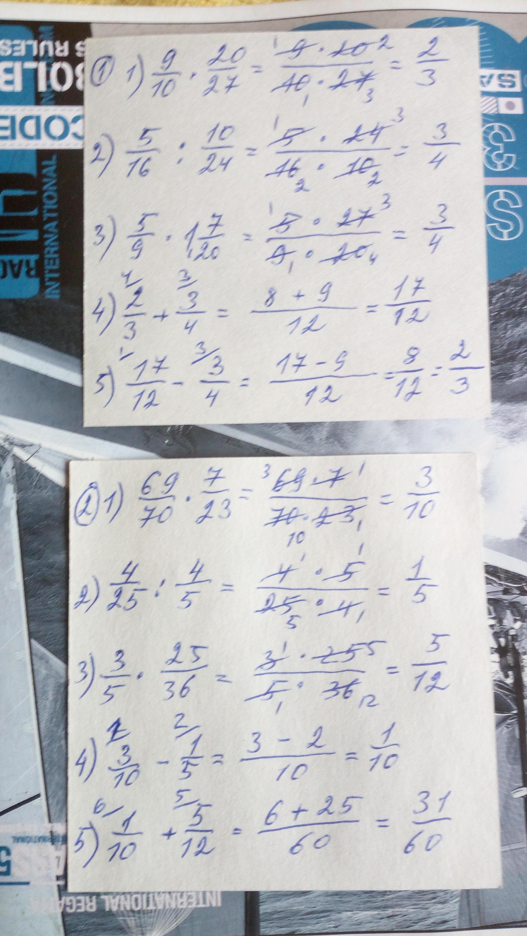 1) 69/70 * 7/23 = 3/10 * 1/1 = 3/10