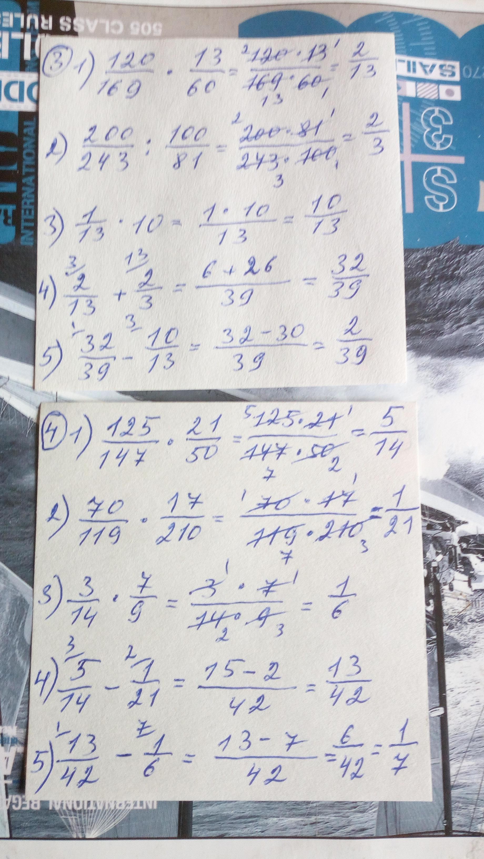 3) 3/14 * 7/9 = 1/2 * 1/3 = 1/6