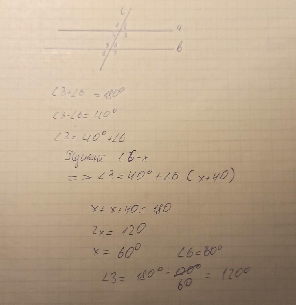 угол6 = 40+угол3 подставляем в верхнее уравнение