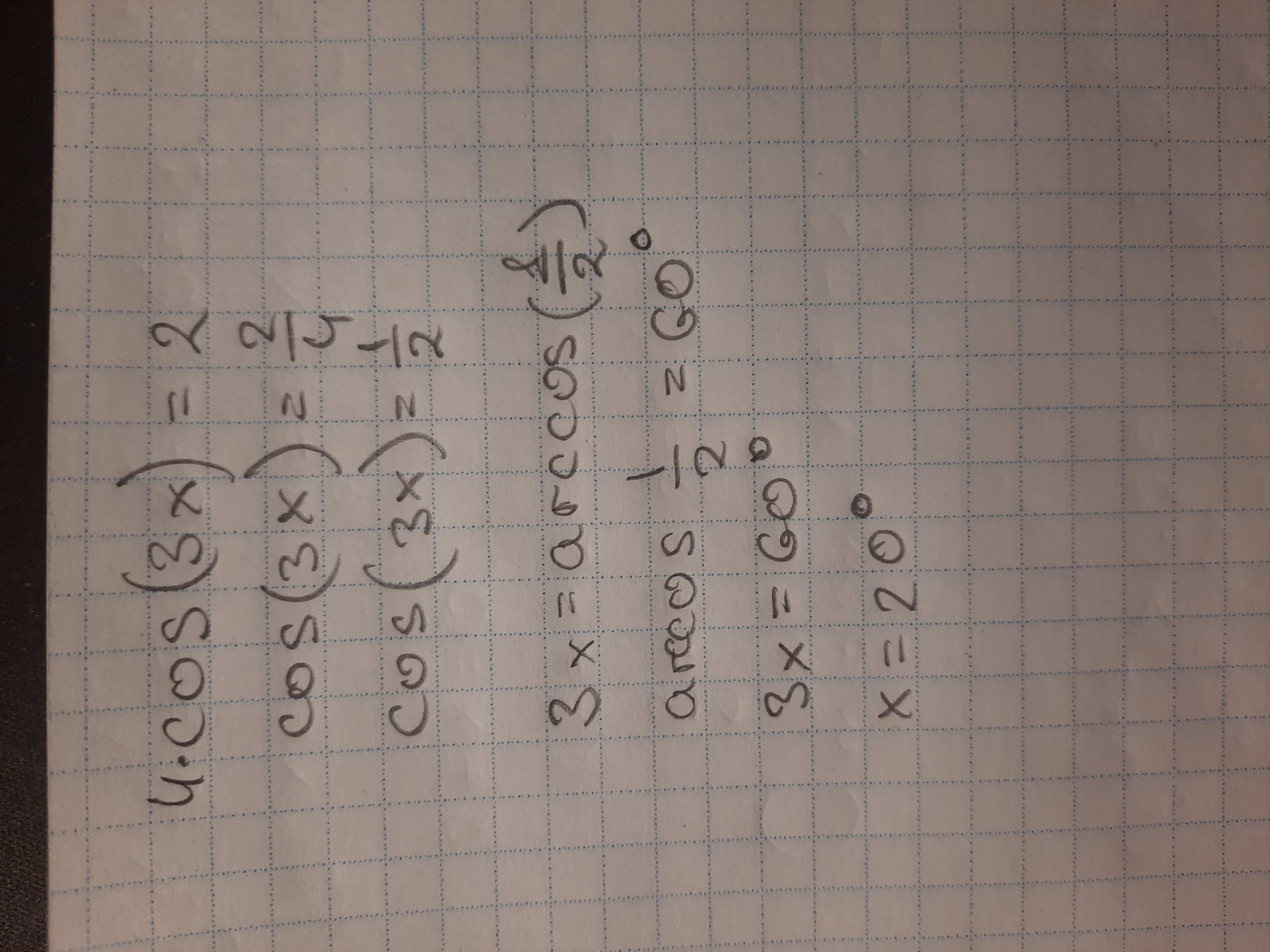 cos3x=1/2 3x=+-π/3+2πk k€Z