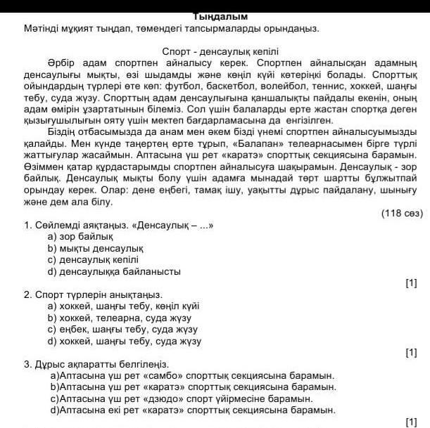 3Аптасына үш рет каратэ спорттық секция сына барамын