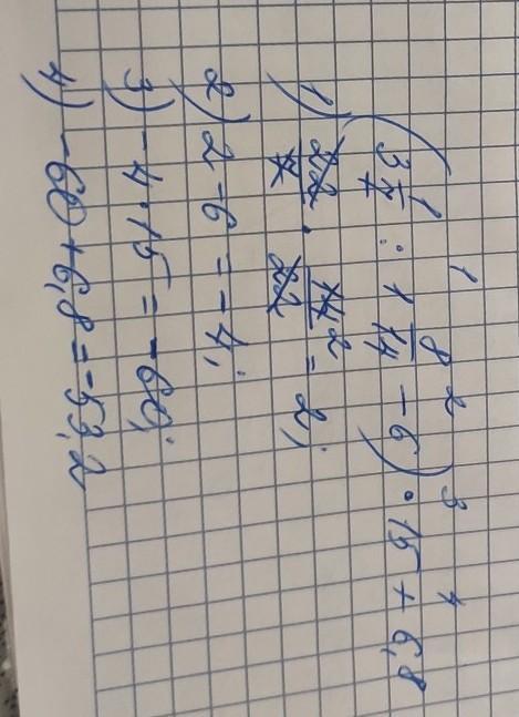 (3 1/7 : 1 8/14 - 6) * 15 + 6,8= (22/7*14/22-6)*15+6,8= -4*15+6,8=-60+6,8= -53,2